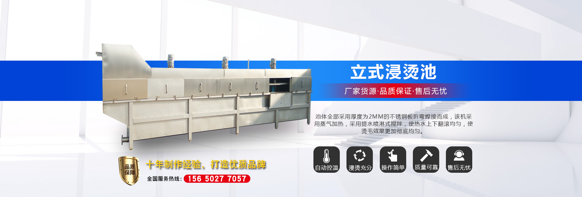 公司長(zhǎng)期與國(guó)內(nèi)外屠宰加工企業(yè)合作,走引進(jìn)——消化——?jiǎng)?chuàng)新和自主研發(fā)相結(jié)合的道路,在國(guó)內(nèi)外同類產(chǎn)品的基礎(chǔ)上,不斷更新和改造。公司主要設(shè)備有:A字型立式脫毛機(jī)、臥式脫毛機(jī)、強(qiáng)力噴淋機(jī)、松毛機(jī)、浸燙池、螺旋預(yù)冷機(jī)、禽籠清洗機(jī)、電暈機(jī)、兔扯皮機(jī)、兔割前爪/后爪機(jī)、剝胗機(jī)、自動(dòng)洗鉤機(jī)、螺旋燙爪機(jī)、雞爪脫皮機(jī)、分割輸送帶等屠宰用設(shè)備。其中,公司獨(dú)力發(fā)明生產(chǎn)設(shè)計(jì)的“電動(dòng)調(diào)節(jié)脫毛機(jī)”及“自動(dòng)控水控溫浸燙池”順利通過知識(shí)產(chǎn)權(quán)局的實(shí)質(zhì)性審查。公司所生產(chǎn)的設(shè)備 可與國(guó)外同類產(chǎn)品配套使用,設(shè)備遠(yuǎn)銷阿爾及利亞、澳大利亞等中東、非州等并建立了長(zhǎng)期穩(wěn)定的合作關(guān)系。
